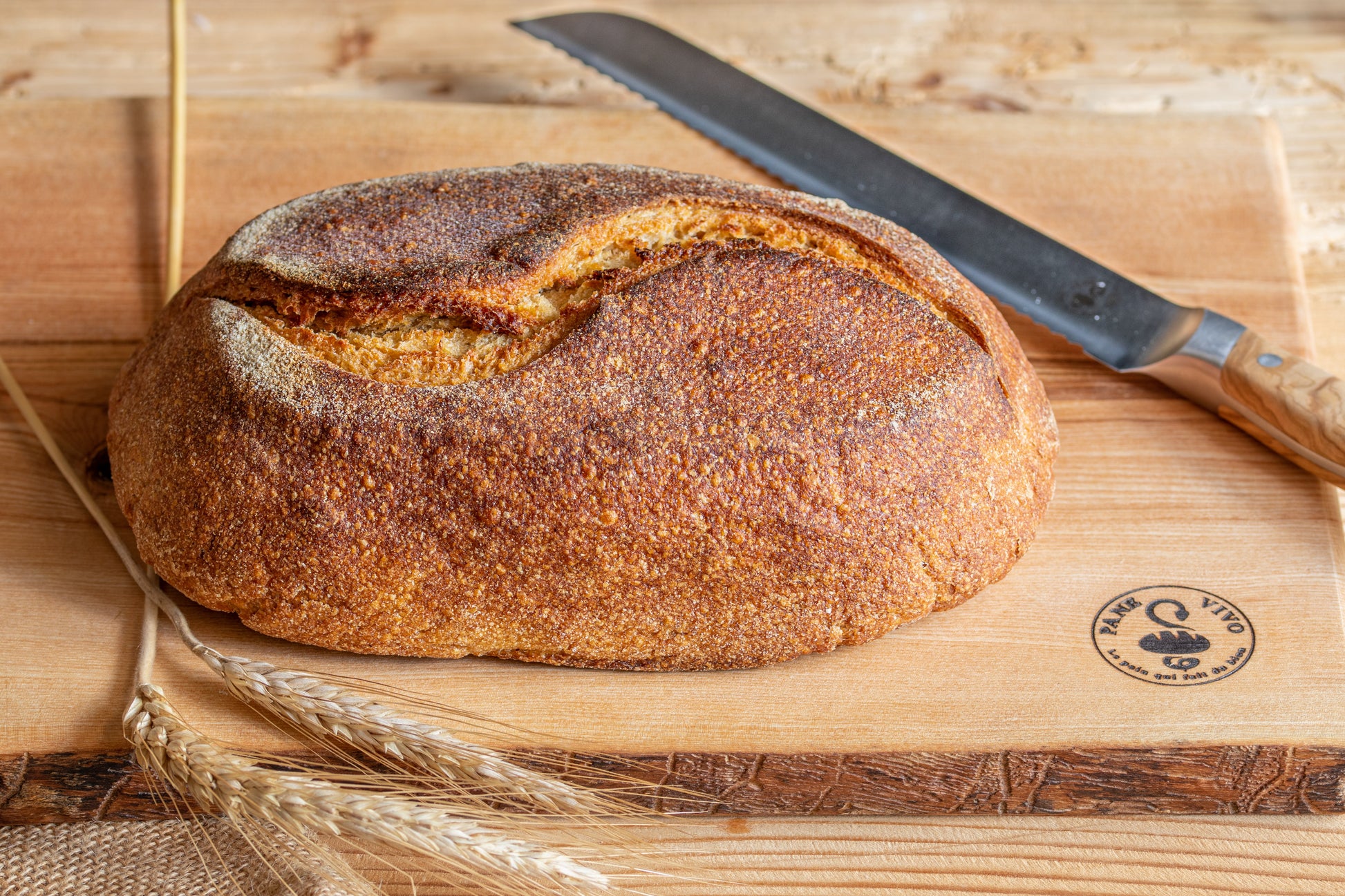 Possibilité de commander avec le pain signature de Pane Vivo, le Sapiens d'1 kilo, toujours au blé dur ancien de Sicile et au levain naturel de 138 ans.